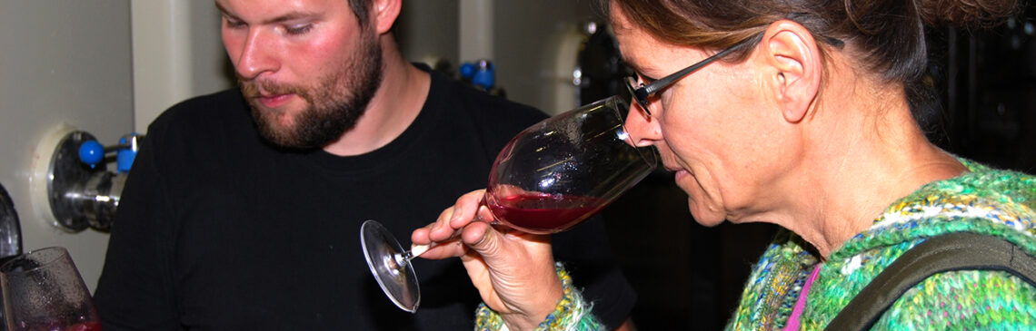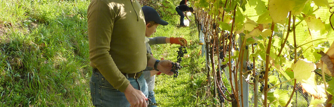 Am vergangen Freitag 24. Oktober schlossen wir den Wimmet 2014 glücklich und zufrieden ab. Obwohl das Jahr 2014 für den Weinbau alles andere als einfach war. Doch der Reihe nach: Der sehr warme Frühling führte zu einem frühen Austrieb, teilweise noch in der Spätfrostzeit. Der Mai war dann sehr warm, sodass in der Blütezeit einige Sorten erste Trockenheitsstress-Symptome zeigten. Nach der Blüte stetze eine unbeständige und immer wieder feuchte Sommerwitterung ein.Die Reben gediehen, doch der Vegetationsvorsprung aus dem warmen Frühling schmolz dahin. Im August zeigten sich erste Anzeichen der Kirschessigfliege #Drosophila Suzukii. Besonders an den frühen roten Sorten wurden die Schäden schnell sichtbar. Beim Cabernet Cortis mussten wir 70 % Verlust hinnehmen. Im Laufe des Septembers griffen die Kirschessigfliegen auch auf den Blauburgunder über. Bei dieser Sorte kam dann noch die Stiellähme und Traubenwelke dazu, sodass wir für diese Ernte rund drei Mal soviel Zeit aufwenden mussten, wie in einem Durchschnittsjahr. Zum Schluss können wir jedoch sagen:Wir konnten ausgezeichnete Trauben in den Keller bringen, die Gärung verläuft sauber und die ersten Jungweine sind vielversprechend.
